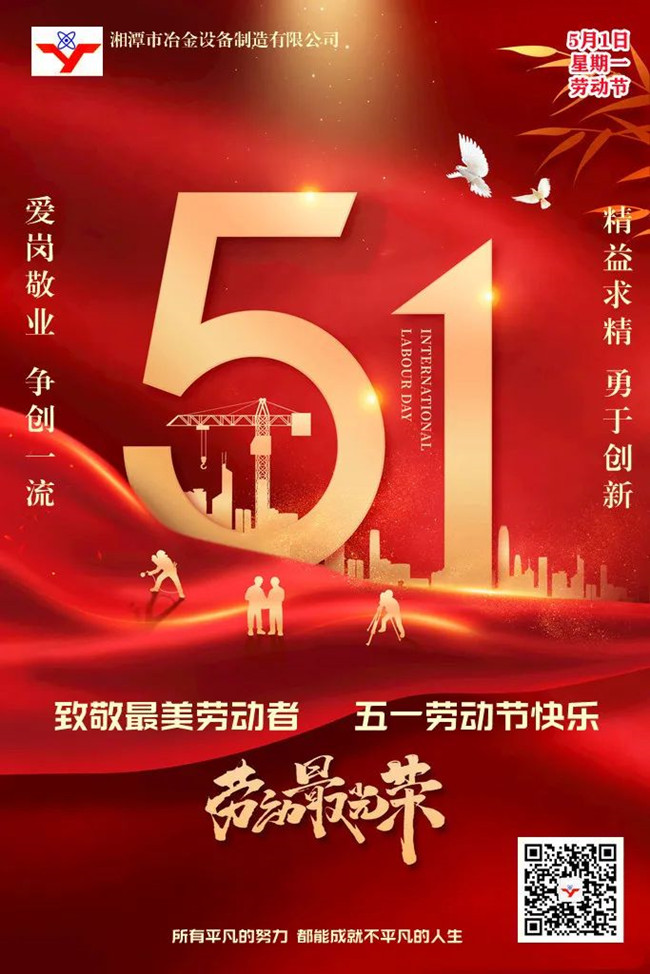 值此五一國際勞動節(jié)來臨之際,湘潭市冶金設(shè)備制造有限公司祝所有朋友、伙伴和家人們:五一快樂!家庭幸福!假期開心!